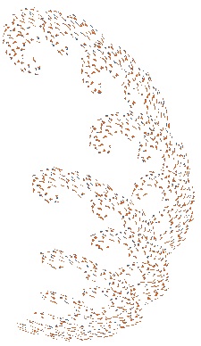 À l’aide d’un logiciel qui porte le nom de Mathematica, nous pouvons créer toutes sortes de figures. Parmi elles, nous pouvons dessiner des attracteurs de transformations affines.